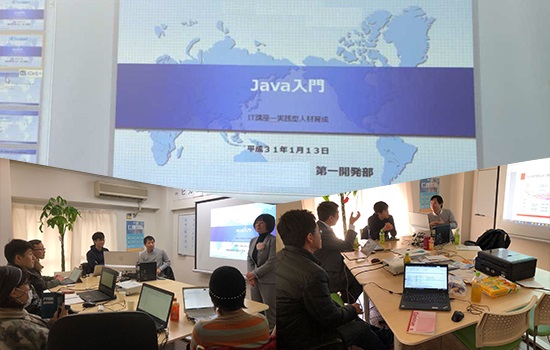 新人研修などの社員研修にeラーニングを導入。プログラミング言語としてJavaの特徴と基本文法を学び、開発環境に用いられる基本操作および簡単なプログラミングとコンパイルを行うことで、一通りの基礎を身に付けます。